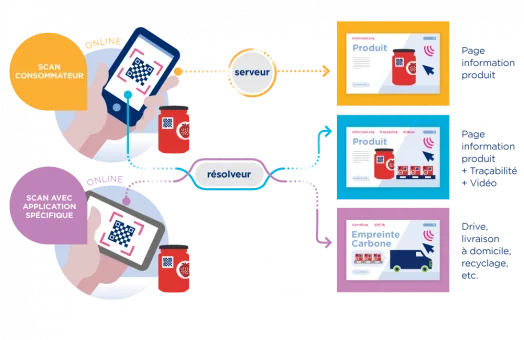 En complément, le standard GS1 Digital Link permet la mise en place d’un “aiguilleur intelligent” (resolveur) qui contribue à l’amélioration des processus de traçabilité et de supply chain et facilite les échanges entre partenaires via des APIs de suivi ou de contrôle.